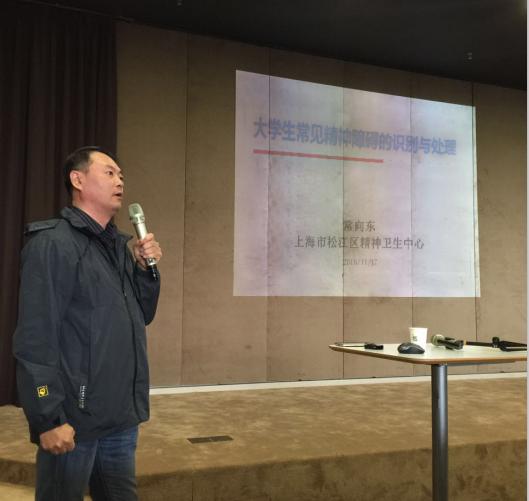 11月16日下午,学生工作部(处)在师生活动中心二楼报告厅,邀请松江区精神卫生中心常向东医生为全体辅导员做了“大学生常见精神障碍的识别与处理”为主题的讲座。