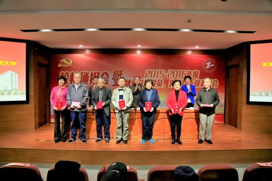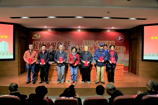会上,退休教工党总支书记沈海庆宣读了“2015-2016年度退休教工党总支优秀共产党员、先进党支部表彰决定”,并由校党委副书记、校退管会主任、校工会主席夏斯云、退休教工党总支书记沈海庆、退休教工党总支副书记唐国耀为获得表彰的17名优秀共产党员和2个先进党支部颁奖。