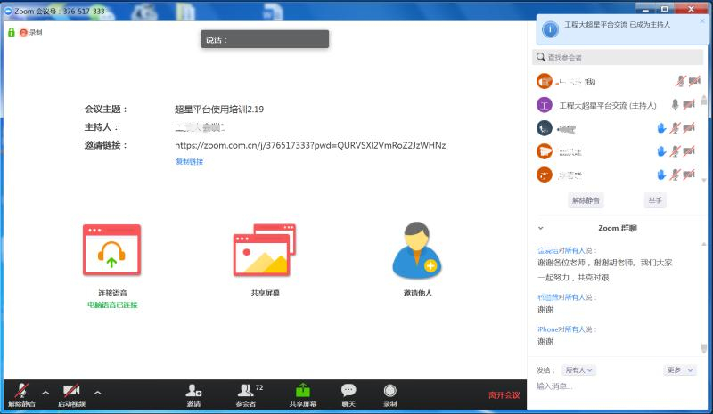 老师们通过进入ZOOM云视频会议系统参加直播答疑活动。超星公司培训人员对教务处搜集上来的近期老师们使用平台建课过程中遇到的主要问题进行详细解答,各院部在线教学技术联络人结合本部门实际情况,就本部门教师反馈的一些特有问题向超星培训人员寻求技术支持。此外,老师们还对如何使用在线教学模式达到最佳教学效果进行了深入交流探讨。