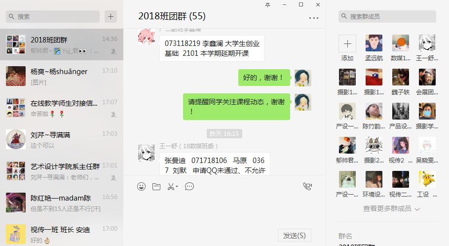 除此之外,学院组建了学生技术联络小组,选拔了一批以优秀学生干部为主体的技术联络员,经过学校的专题培训,熟练掌握线上学习的操作,服务所在班级的其他同学,做到了全年级全专业覆盖。