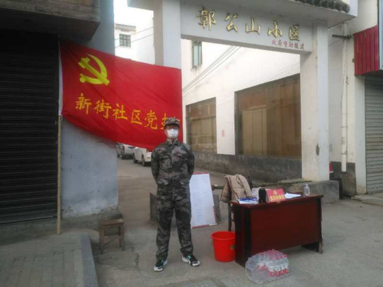 1649172班的退伍兵朱家梁同学于2月1日-至今,在家乡江西省景德镇市乐平市涌山镇稍田村,协助村委会做疫情防控农户信息摸底、聚集情况排查、关卡守关工作。