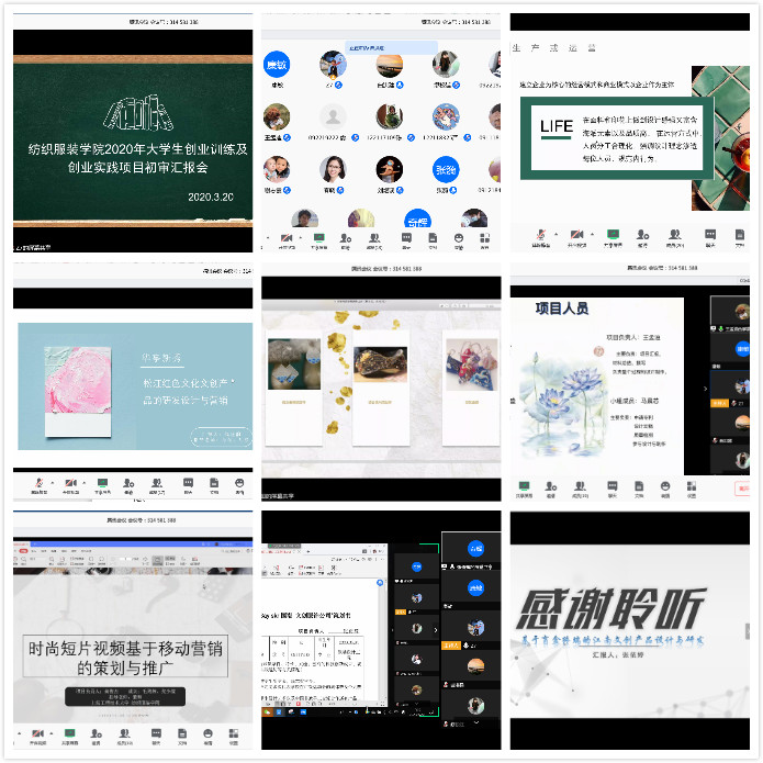 3月20日上午,纺织服装学院召开2020年大学生创业训练及创业实践项目线上评审会,学院党委副书记张漪、谢志霞、服装设计与工程系主任曲洪建、服装与服饰设计(中法合作)系主任李春晓、学办主任沈智莉、辅导员康敏和赵桐参加了线上评审,会议由赵桐主持。