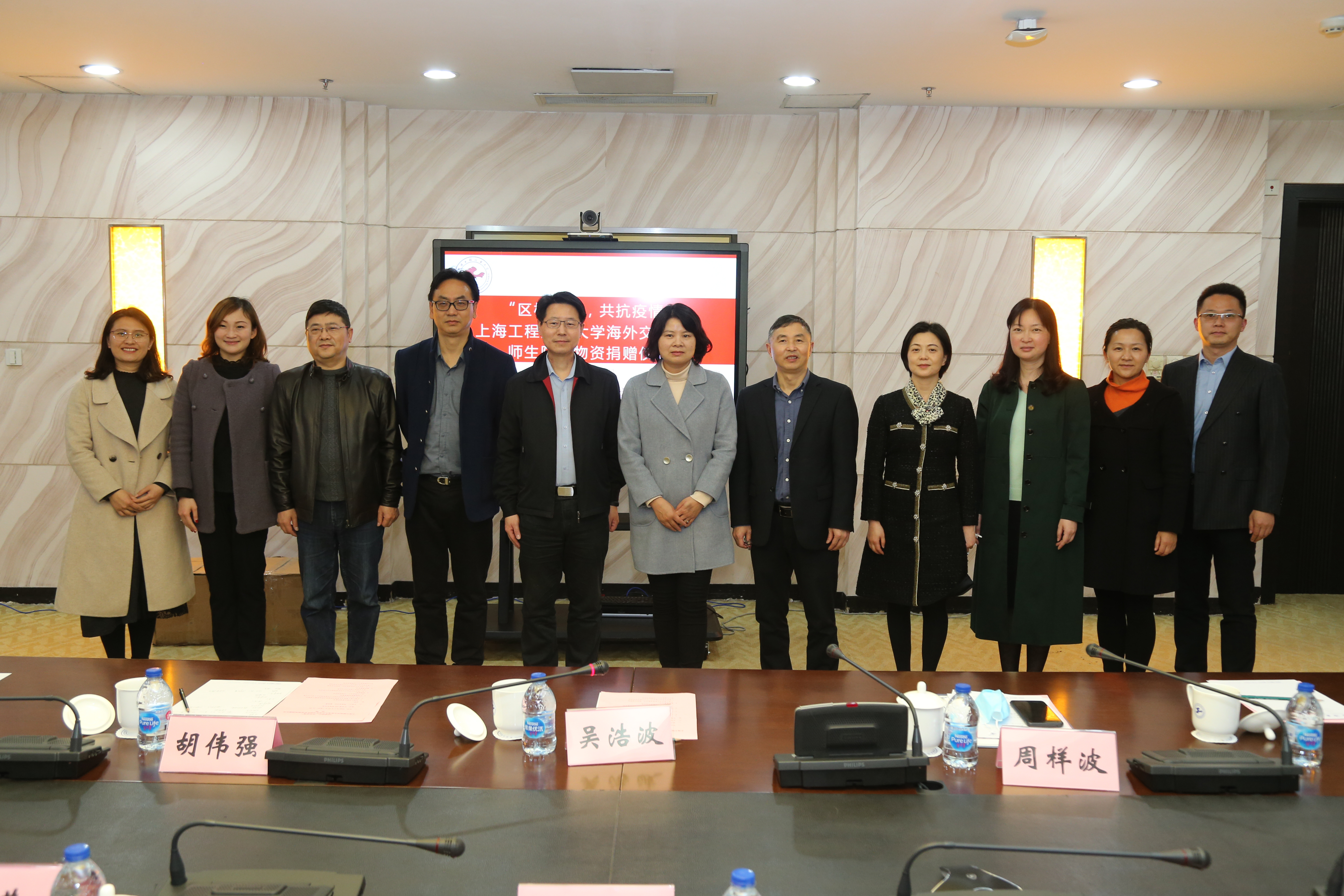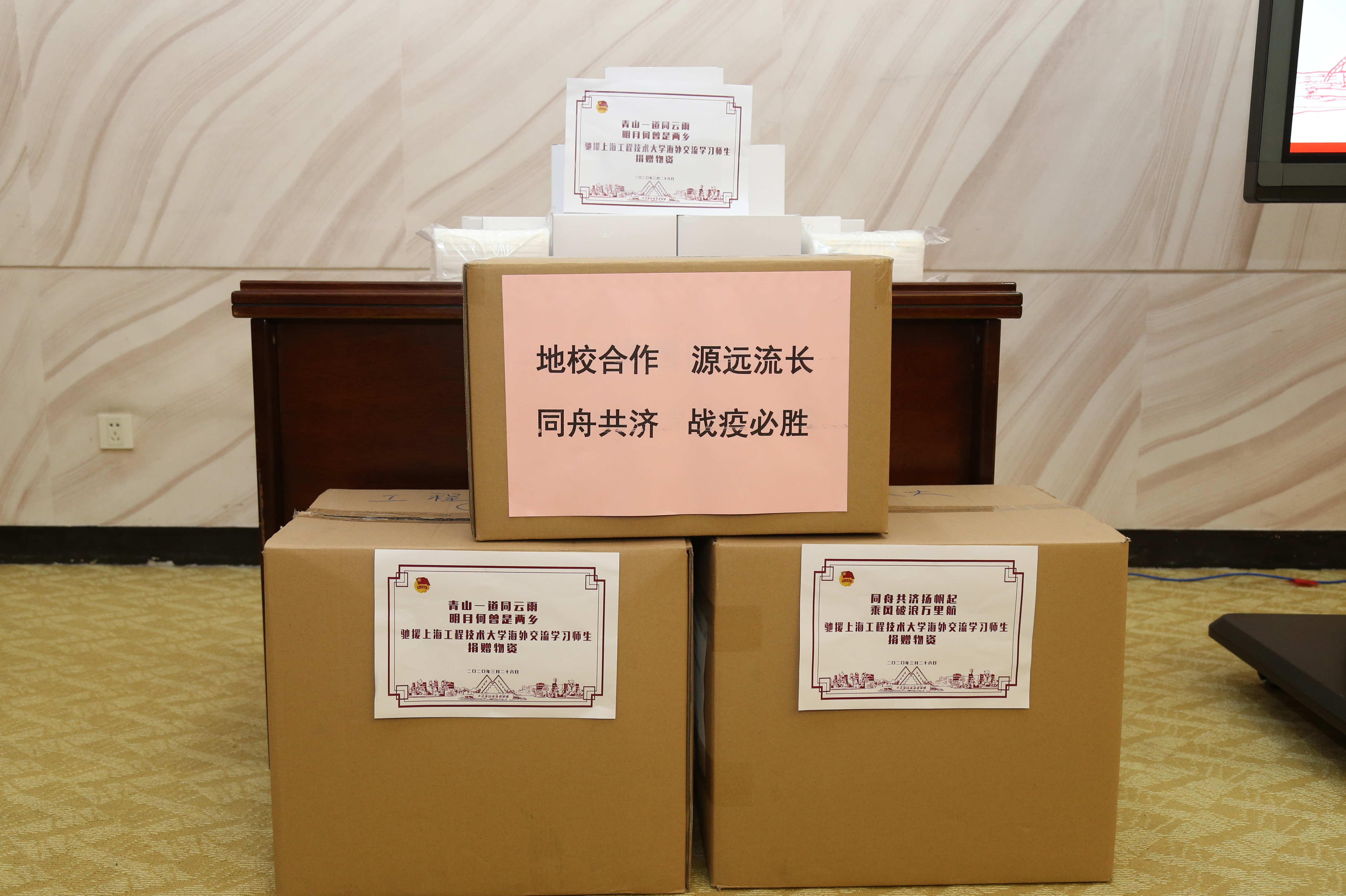 随着全球新冠肺炎疫情加速扩散蔓延,尤其是欧美地区疫情形势日益严峻,身在异国他乡的海外交流师生的安危无时无刻不牵动着学校的心,而此项工作也得到了松江区广富林街道、上海旭诺实业有限公司、松江区融媒体中心的大力协助与全力支持,共捐助给我校9334个医用口罩。3月26日下午,一场由区校接力实现的海外交流学习师生防疫物资捐赠仪式在行政楼208举行。校党委副书记、副校长朱晓青、广富林街道党工委书记、人大工委主任吴浩波、街道党工委副书记胡伟强、街道办事处副主任张新、街道社区事务受理服务中心主任曹立新、街道团工委书记陶健、街道党建服务中心副主任黄晓君、区融媒中心总编辑周样波、记者李于伯等出席捐赠仪式。捐赠仪式由校团委书记董旖旎主持。