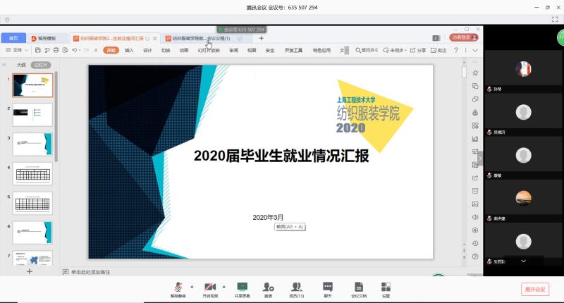 为贯彻落实党中央、国务院、教育部、上海市委、市政府以及学校关于应对疫情做好高校毕业生就业工作的重要决策部署,扎实做好毕业生就业工作,3月30日上午,纺织服装学院召开线上就业工作推进会。纺织服装学院党委书记朱君璇,党委副书记、院长谢红等学院就业工作领导小组、工作小组全体成员出席会议。会议由学院党委副书记谢志霞主持。