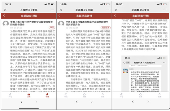 海外党员积极参与上海教卫e支部上发布的动态互动