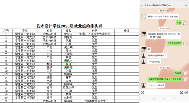 抢占云阵地,营造师生就业工作不掉线的积极氛围。利用党政两个公众号、微信群、APP等发布20余期微信推送,建立党员结对网格化管理,做好毕业导师的就业进度信息对称,做好学生网络思政工作和云就业服务,并保持网络和电话联系,营造尽快就业、精准就业的氛围。