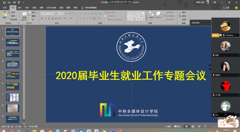 为贯彻落实《上海工程技术大学关于应对疫情做好2020届毕业生就业工作的通知》以及《中韩多媒体设计学院2020届毕业生就业工作实施方案》工作要求,更好地服务毕业生择业就业和推进2020届毕业生毕业、就业等各项工作顺利开展,4月10日,中韩多媒体设计学院在吴亚生院长的指导下利用腾讯会议平台举行2020届毕业生就业工作专题视频会议,学院党委副书记马建立,副院长顾艺,全体辅导员,全体2020届本科生、研究生参加会议。