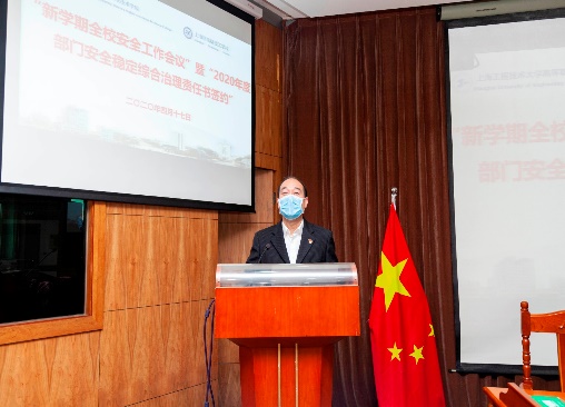 沈勤院校长指出,要通过层层签订安全稳定工作目标责任书,确保学院安全管理工作落到实处,促进学院教育事业健康持续和谐发展,要按照学院分级管理、分级负责,谁主管、谁负责的管理体制,依据学院工作分工,抓好责任落实。