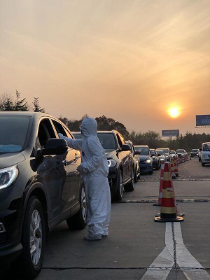 在报名的第二天,小姑娘就上岗了。工作地点是沪苏浙高速公路吴江汾湖经济开发区出入口的收费站点,工作内容是帮助医务人员测量和记录进沪车辆人员的体温。“收费站有两道测体温的排查点,第一道是预检,如有体温超过标准的人员就会到复检点进行第二轮复查。”她介绍,“我的工作在复检点帮助医务人员复查。如果发现体温高的人员,就要立刻协调车辆将相关人员送去医院检查。”