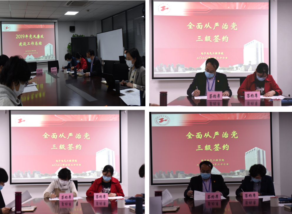 最后,党委书记与党委副书记、支部书记代表、工会主席,院长与副院长、系(室、中心)主任代表签署了《电子电气工程学院2020年全面从严治党责任书》。
