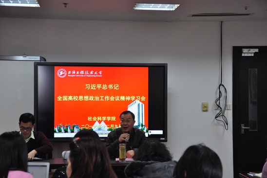 社会科学学院、马克思主义理论教学部传达了习近平总书记在全国高校思想政治工作会议讲话的重要内容,并结合工作实际展开深入研讨。党总支书记曹开云、院长刘志欣、副书记程玉莲、副院长邱梦华及全体学院教师参与会议并发言。党总支曹开云指出,要实现中华民族伟大复兴的中国梦,教育的作用不容忽视。高校立身之本在于立德树人,我们全体教师都要时刻铭记自身肩负的重要使命,把立德树人作为一切工作的中心环节,把思想政治工作贯穿在日常教学、科研及学生工作的全过程。院长刘志欣表示,我们的高校是党领导下的高校,尤其是从事思想政治教育的教师,更应该坚持不懈传播马克思主义科学理论,坚持不懈培育和弘扬社会主义核心价值观,为学生成长奠定科学的思想基础。同时我们每位教师也要培养理性平和的健康心态,并把学院建设成为安定团结的模范之地。思想政治工作从根本上说是做人的工作。程玉莲副书记指出,学生工作办公室也将密切关注学生思想政治状况,不断推动思想政治工作传统优势同新媒体时代的信息技术高度融合,增强时代感和吸引力,使学生成为德才兼备、全面发展的人才。副院长邱梦华指出,我们全体教师应该用好课堂教学这个主渠道,遵循教书育人的规律与学生成长的规律,狠抓教学能力和教育水平的提高,不断提升思想政治教育的亲和力和针对性,满足学生的成长需求。学院张健明教授结合自己从教三十多年来的感受指出,作为一名高校教师,要始终坚持把教书和育人统一起来,把言传和身教统一起来,做好学生健康成长的指导者和引路人,真正成为学生的精神导师。