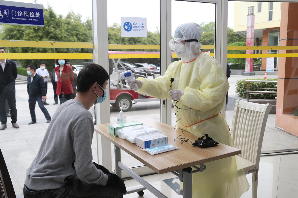 校门诊医生对学生反复测温,体温仍超过37.3℃。引导学生至临时转运点,启动发热转诊流程,联系120送往定点医院发热门诊就诊,同时联系辅导员,及时上报信息,对发热学生的生活场所进行消毒,排摸密切接触者,并做好后续跟踪。