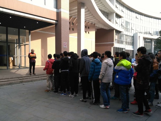 为进一步强化消防安全教育,提高师生火场应急逃生和自我防范能力,近日机械工程学院在实训楼4号楼举行以“珍爱生命、远离火灾”为主题的消防疏散逃生演练。学校保卫处相关人员现场指导同学们如何逃生疏散、应急救援等,学院实验室教师参与了演练的引导疏散指挥工作。整个演练活动组织严谨,紧张有序。参加演练的同学严肃认真,服从指挥,不抢先、不推搡、不拥挤,没有发生推、拉、拥、挤等现象。集合完毕后各班班长迅速清点人数并向现场总指挥汇报。从下达命令演练开始到最后一名同学疏散、 到安全集中点,仅用了 2分 50秒。