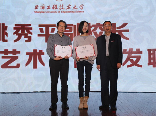 在成立仪式上,学校聘请了上海戏剧学院创作中心主任、博士生导师陆军教授,中国合唱协会副理事长、上海合唱协会会长王燕教授,上海歌舞团首席、国家一级演员朱洁静老师,担任我校校外艺术顾问。校党委书记李江、副校长姚秀平和艺术顾问共同为上海工程技术大学艺术教育中心成立推杆启动,姚秀平副校长为校外艺术顾问颁发了聘书。
