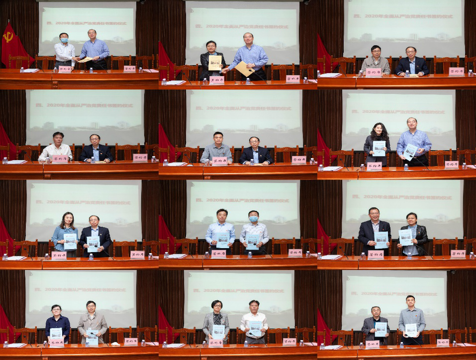 会议进行了2020年党风廉政建设责任书签约仪式,学院、校党政正职与副职签定责任书,学院、校分管领导与各分管部门负责人代表签署了党风廉政建设责任书。