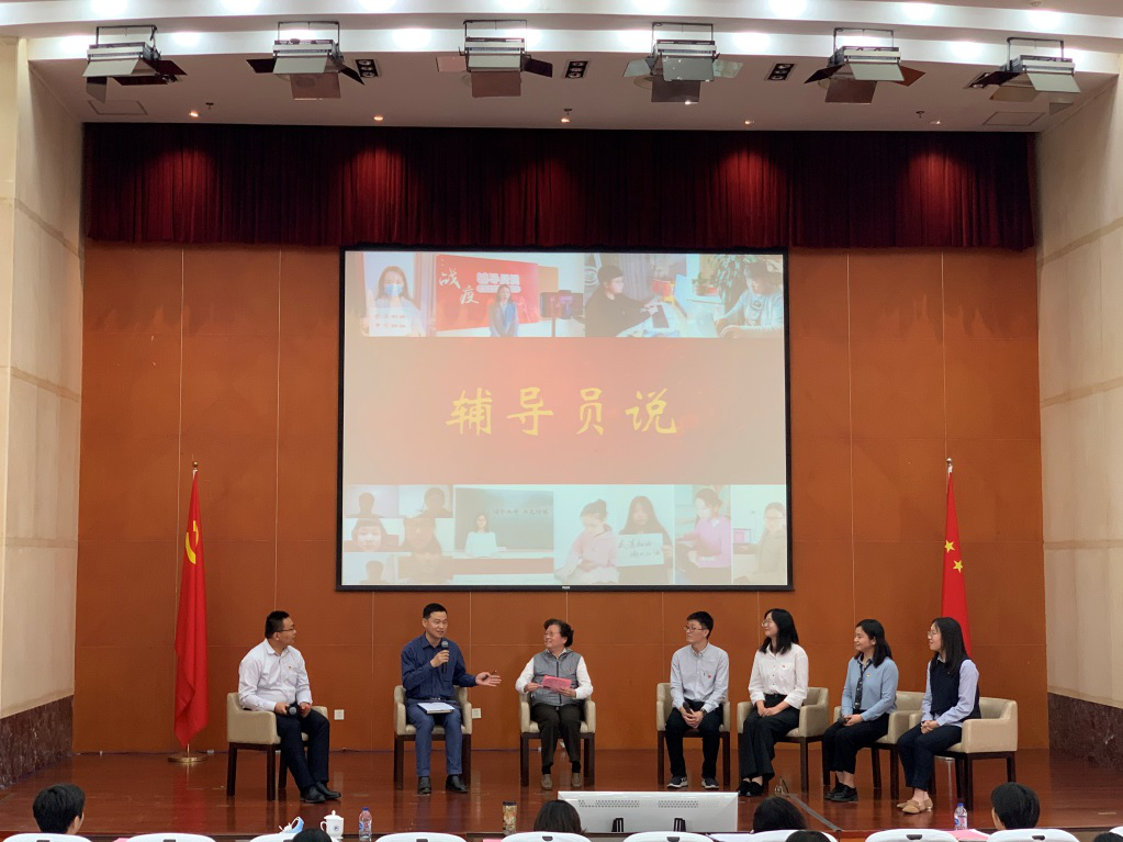 第二环节,学员沙龙由管理学院辅导员吉祥作为话题主持人展开, 4名年轻的辅导员与关工委顾惠云老师、机械与汽车工程学院党委副书记王东阳老师台上对话。话题从知乎上“高校辅导员是什么样的存在?”引出,又围绕马克思的名言“理论只要说服人,就能掌握群众,而理论只要彻底,就能说服人”讨论了辅导员科研的苦与乐。机械与汽车工程学院辅导员苏鹏源从当前疫情下做一名“快递员”出发,畅谈做好始于辅导员终于辅导员的“新三同”。化学化工学院辅导员郑文静讲述了辅导员在做学生工作中实践与研究的重要性。纺织服装学院辅导员孙琴、外国语学院齐晓悦围绕用心、用情做好与学生的交流,协调多条线工作与开展科研工作进行了交流。被大家热情称为顾妈妈的顾惠云老师进行了点评,强调做好辅导员工作必须的一点是要用情,用情工作,情能感人,情能化人。王东阳老师从做好科研要思考“学了什么”、“想了什么”、“写了什么”,要有问题意识,主动分析现象背后的本质,为辅导员科研提供建议。两位老师还为本次培训班的学员送上金句,勉励辅导员小伙伴们,在新时代号角带领下,不忘初心使命,培养时代新人。