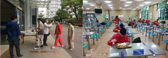 根据学院、校实际情况对中本贯通返校、复课学生采取封闭式入学管理,由学生管理部门负责学生日常管理。有关部门协同做好公共场所及寝室的防疫、防护。学生采取套餐、隔座用餐管理模式。