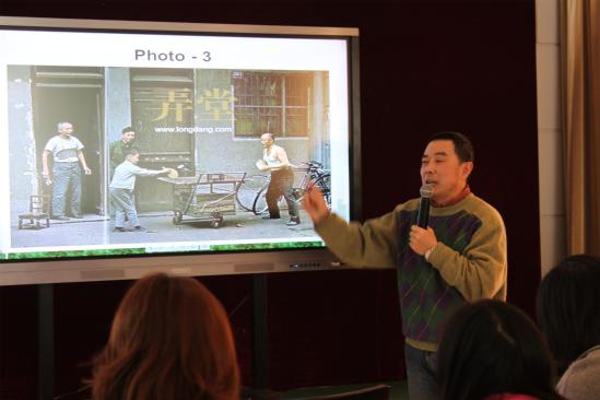 活动伊始,外国语学院沈逸平老师从弄堂历史、石库门建筑、弄堂特色、弄堂游戏四个方面对弄堂文化做了详细介绍。通过文字与图片相结合,不仅让在场的所有人感受到弄堂凝固着人们的需要、感情、审美、希望和追求,还勾起了在场尤其是老上海人难忘的回忆。不得不说弄堂构成了社会的写照,历史的见证,文化的标志,心灵的寄托。活动主办方精心准备了各式特色的弄堂小吃,与会教师细细品味地道的上海弄堂味道。
