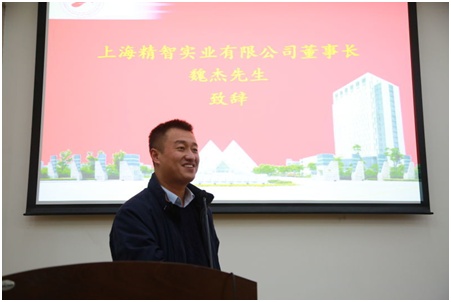 精智实业有限公司董事长魏杰在致辞中说,他与我们一样都是理工人,手中掌握的技术是我们的资本。他希望同学们能发挥出自身的价值,找到自身定位,在未来的发展中可以展现出自己年轻的身姿。