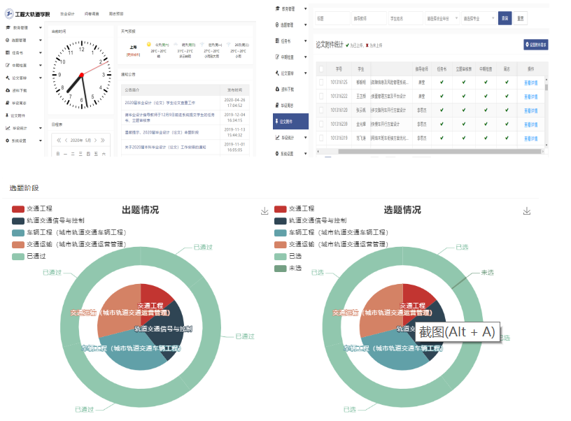 为坚决贯彻落实习近平总书记重要指示精神,严格落实党中央、国务院关于疫情防控的工作部署,根据上海市委市政府、上海市教委、学校党委有关会议精神和工作要求,城市轨道交通学院党委高度重视,学院全体教师牢记使命,做好疫情防控工作和网络课堂的同时,对于毕业设计(论文),本着做精做细把好质量关的要求,师生利用学院自主设计的毕业设计(论文)网络管理平台,有序开展了毕业设计(论文)工作的线上指导和答辩。