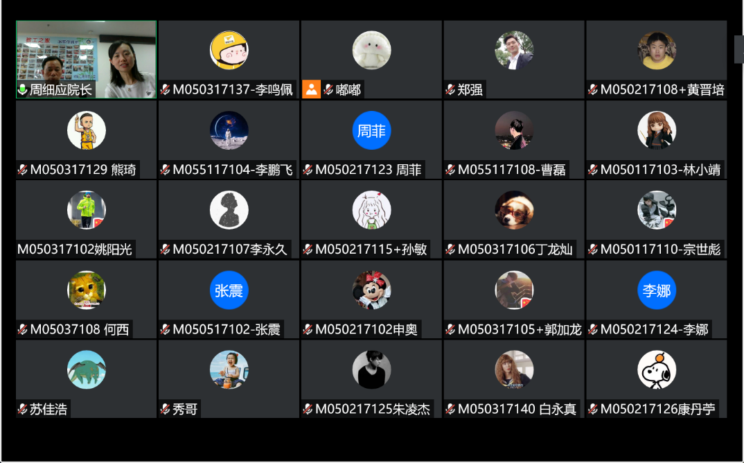 在互动交流环节,与会老师就毕业生们普遍关心的课程考试、学分修读、论文答辩、学位申请,以及就业面试和签约、离校手续办理等问题一一作了解答。虽然分别数月的师生们只能以这样一种特殊的方式在云端相见,但时间和距离丝毫没有阻隔同学们对学校的想念和老师们对学生的牵挂,同学们积极发言交流,气氛融洽热烈。
