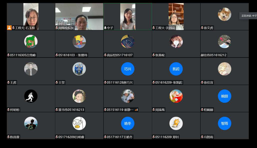 周细应院长代表材料工程学院全体教职工,向由于疫情不能按时返校的毕业班同学表示关心和慰问,对同学们的理解和支持表示感谢。周院长向同学们简要说明了当前的疫情防控形势和上海市教委以及我校的防控工作安排,希望毕业生们本着对自身学业负责的态度,努力克服疫情带来的不利影响,认真根据学校和学院的相关要求完成课程修读、论文撰写、答辩以及毕业前的各项工作。周院长着重分析了今年严峻的就业形势,介绍了学校和学院在推进毕业生就业上的工作举措,鼓励毕业生们审时度势、转变心态、把握机会、主动出击,早日找到满意的工作。周院长强调,学生是学院之本,学生与学院构成了密不可分、相互促进的“发展共同体”,每位同学都要充分发挥自身的主动性、积极性和创新性,共同奋斗、共同进步。