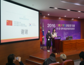 12月29日下午,中韩大学创业冬令营活动在上海工程技术大学长宁校区圆满落幕。本次活动得到了我校和韩国蔚山大学、蔚山科学大学校领导的关怀和肯定,也得到韩国蔚山大学就业创业支援处、韩国蔚山大学全球技术营销培训中心、我校国际交流处、国家大学科技园、汽车工程学院、中韩多媒体设计学院的联合大力支持。