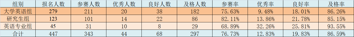 本次竞赛秉承“了解词汇水平,重视词汇积累,突破学习瓶颈,树立学习信心”的宗旨,得到学院领导和教师的大力支持,成为疫情期间我校在线教学的有益补充。