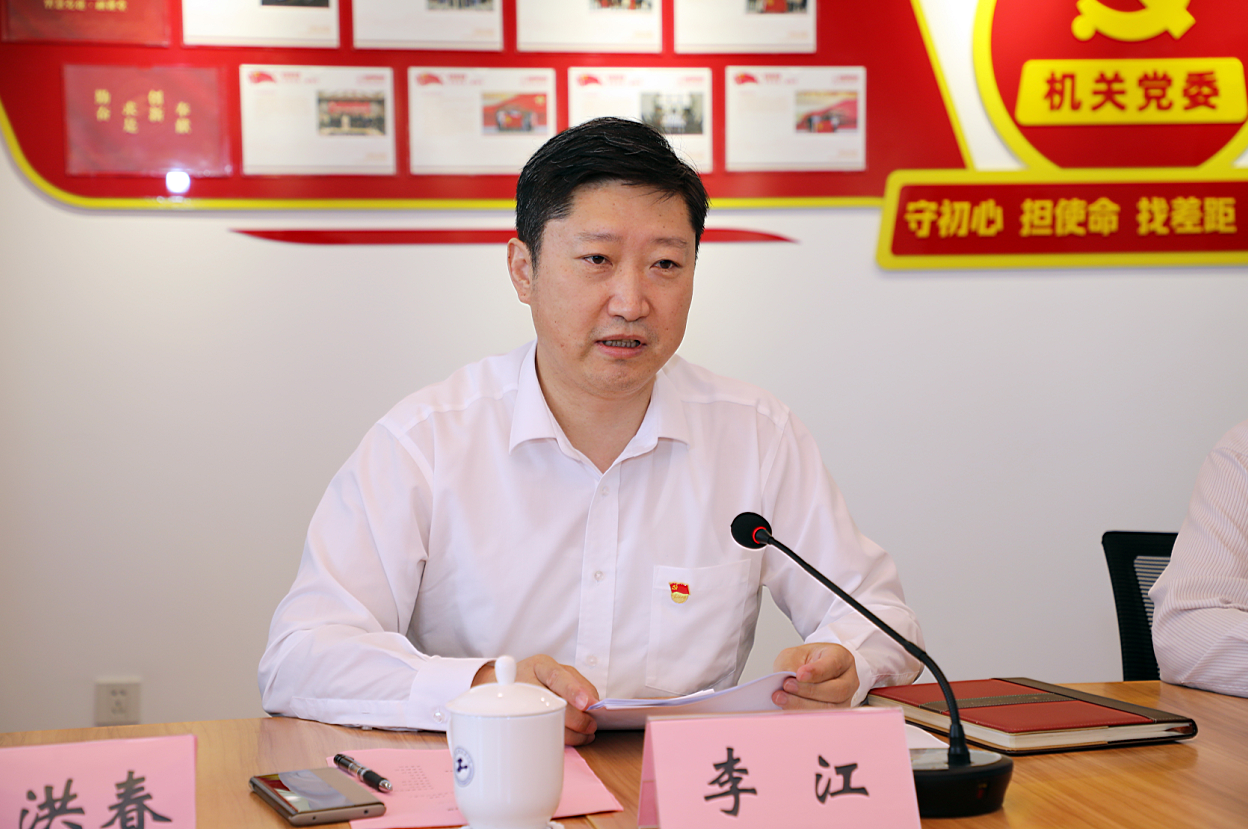 校党委书记李江对机关各支部提出四点要求。第一,提高政治站位,主动适应新时代机关党建工作新要求。机关党委要进一步学习贯彻落实中央关于机关党的建设的工作要求,要坚持以党的政治建设为统领,要以提升组织力为重点充分发挥机关党组织的功能作用;第二,深化“三型机关”建设,打造一流机关服务品牌。机关党委在全面推进“服务型”“科学管理型”“执行力型”的机关建设过程中要以提升服务意识为重点打造“服务型机关”,要以推进“一网通办”为重点,打造“科学管理型”机关,要以强化履职尽责为重点,打造“执行力型”机关;第三,坚定不移担当使命、促发展,提升机关工作质量和水平。要进一步推进机关党建与业务工作深度融合,要进一步把握机关工作的规律性;第四,提升综合素质,增强做好机关工作的责任感和使命感。