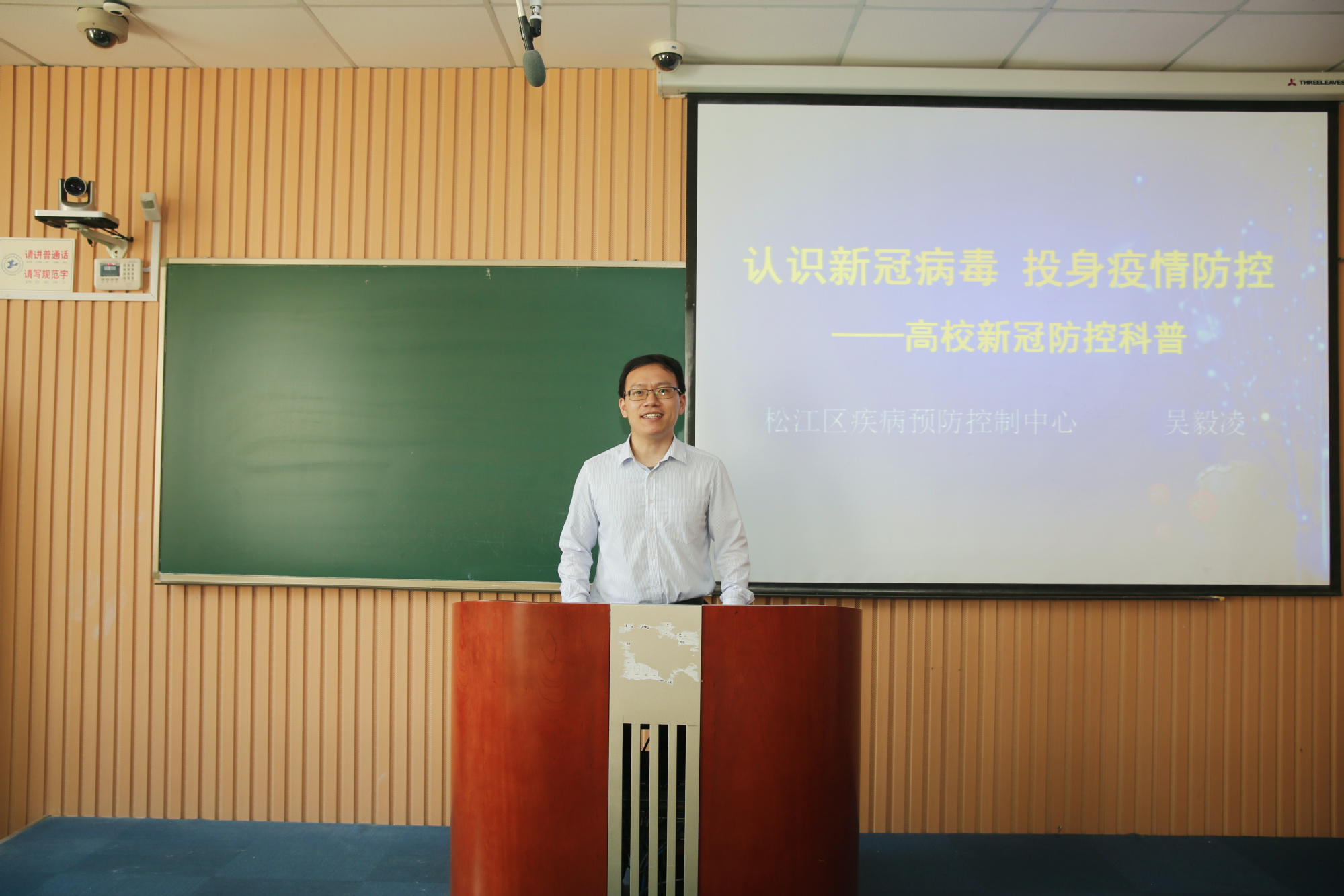 松江区疾控中心慢性病防治科科长吴毅凌受邀完成了主题为“认识新冠病毒 投身疫情防控”的导论课程,他从新冠肺炎基本知识、无差别预防措施、返校后的防控措施等方面对疫情防控知识进行了全面的讲解。校门诊部防保科周疆医生从公共卫生概念出发,完成了“疫情防控期间个人卫生护理”课程录制。后续,市区两级疾控中心、卫健委、卫监所等专家将从疫情防护的方方面面以及日常个人卫生知识、传染病预防等多个方面录制实战性、实用性兼具的系列网课,并将通过日常教育培训平台等面向全体在校生发布,同时纳入今年的新生教育体系。