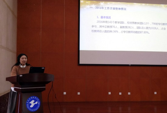 谢红处长结合市教委激励计划指导指标,从对我校的本科教学教师激励计划实施情况做了充分的数据分析,就2016年及首聘期工作开展情况进行了总结,同时公布了2016年教学团队考核情况和三年聘期考核情况。对教学团队工作存在的不足之处进行了分析,并进一步提出了我校下一阶段教学团队工作的改进思路。