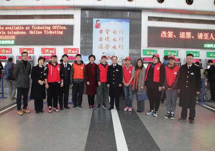 1月18日,高职学院党委沈海庆书记、段海霞副书记等一行3人在上海火车站党委副书记李博和团委书记陈浩的陪同下亲切慰问了参与2017年春运志愿服务工作的学生们。