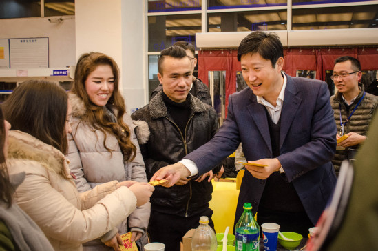 走过满怀活力的2016年,我们迎来充满希望的2017年。1月26日是农历腊月二十九,俗称“小年夜”,在这辞旧迎新之际,学校为留校学生准备了一顿丰盛的年夜饭,让留校学生虽然不回家也能感受到家人般的温暖。17:00,学校第四餐厅张灯结彩,披上节日盛装,“2017年寒假留校学生年夜饭”在这里举行,校党委书记李江,副校长鲁嘉华以及党办、校办、学生工作部(处)、保卫部(处)和后勤实业发展中心等职能处室负责人、相关学院党委(党总支)副书记和辅导员等共同参加。