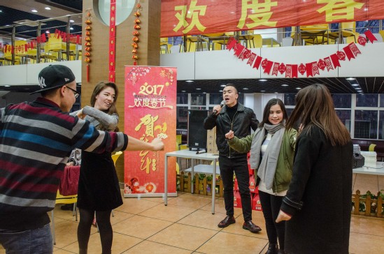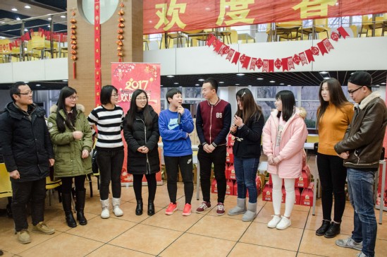 活动中同学们表演了精彩的节目,来自机械工程学院的周益涛同学带来一首温暖的歌曲《全世界谁倾听你》,点燃在场师生们的激情;来自社会科学学院的新疆少数民族同学带来新疆歌舞《跳吧》,激情洋溢的歌舞,将现场气氛逐渐推向高潮,少数民族同学们说:“这是我们第一次在学校体验传统意义上的新年,有一种很温馨,很快乐的感觉”;在《正话反说》的游戏环节,同学们积极参加,赢得心仪的小奖品……精彩节目应接不暇,师生们欢聚一堂,载歌载舞、享受美食,共同庆祝农历鸡年的到来。