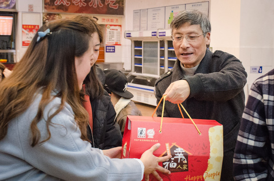 校领导携手相关职能部门负责人为留校学生送上最真切的祝愿,李江书记为每一位同学送上春节红包,鲁嘉华副校长为每一位同学发放新春大礼包,并叮嘱同学们寒假期间要注意身体,记得给家人送祝福。来自不同学院的70多名留校学生与校领导共话家常,