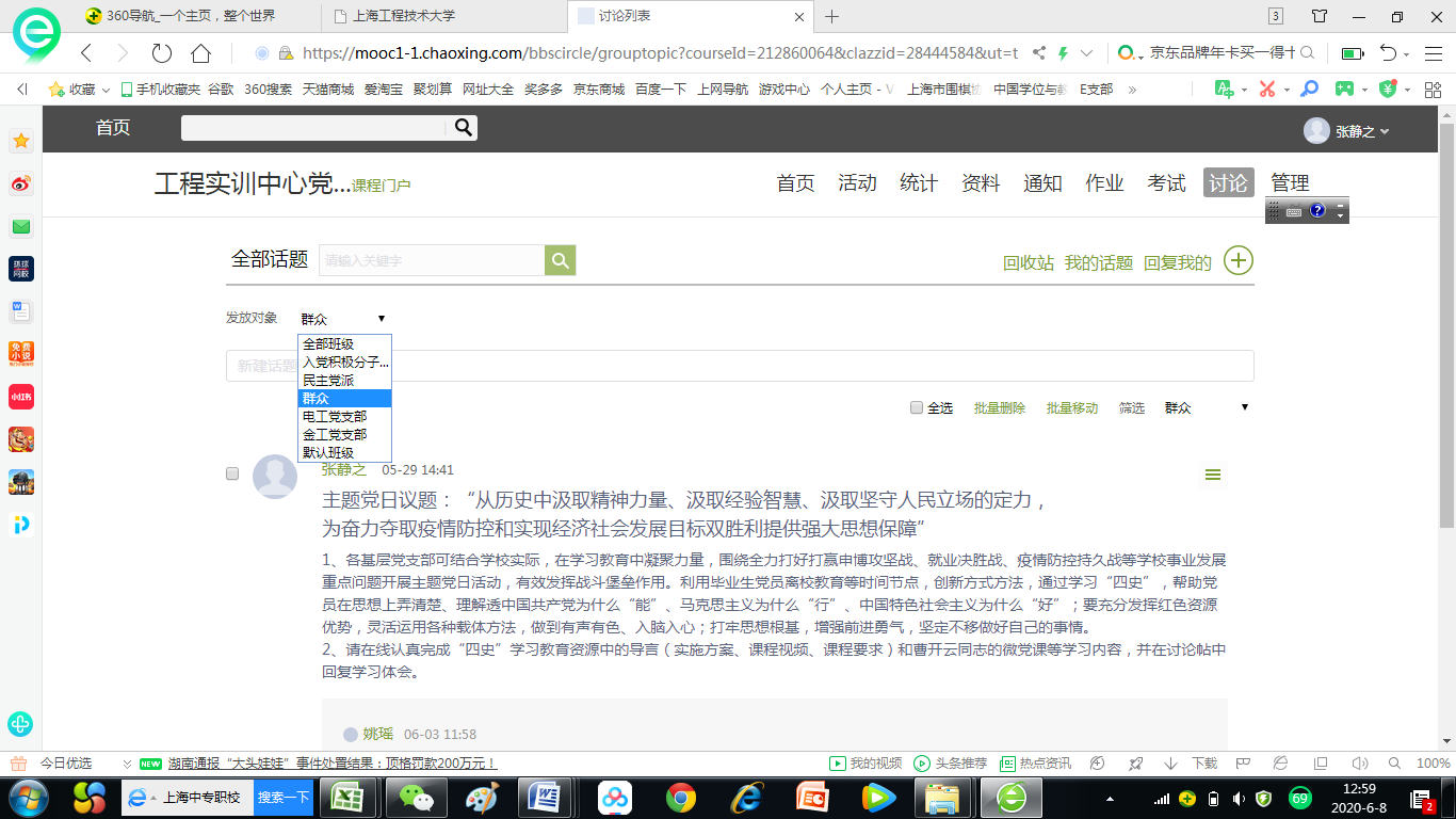 “工程实训中心党总支‘四史’学习教育”课程平台建设以来,于5月29日进行了第一次主题党日网络授课,主题为“从历史中汲取精神力量、汲取经验智慧、汲取坚守人民立场的定力,为奋力夺取疫情防控和实现经济社会发展目标双胜利提供强大思想保障”。