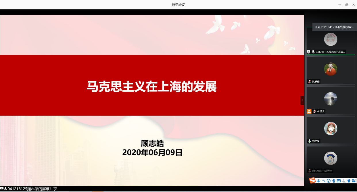 会上五位学生党员和两位入党积极分子从不同角度出发,与支部其他党员和入党积极分子分享“四史”红色故事。其中,党员顾志皓从在一大会址做讲解员的经历出发,用许多一大会址中的老照片给大家讲述了马克思主义在上海的传播与发展。党支部书记郑文静表示,“历史是最好的教科书,也是最好的清醒剂”,“四史”红色故事的分享,有助于学生党员们对党史、新中国史、改革开放史、社会主义发展史的理解,有益于学生党员们从一个个鲜活的故事和榜样中更加坚定理想信念和党员的初心。