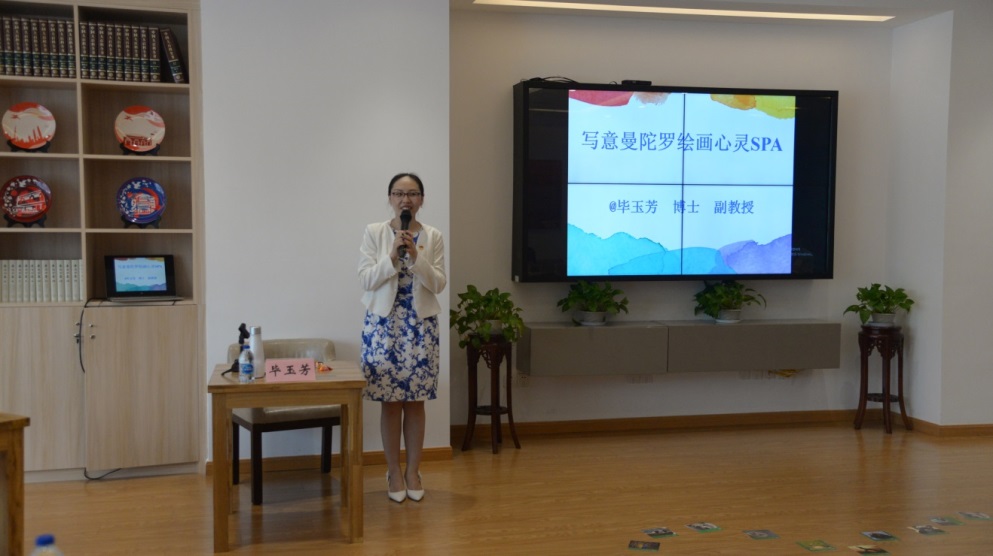 同时,学校党委为了加强对组织员队伍的人文关怀,邀请了学校心理健康教育中心副教授毕玉芳老师以《写意曼陀罗绘画心灵SPA》为题进行了专题讲座。毕玉芳老师首先带领组织员进行了有趣的手指操练习,并从写意曼陀罗是什么、为何画、如何画以及写意曼陀罗的创作、诠释和应用等方面进行了介绍。在大家对写意曼陀罗有一定的了解和理解的基础上,先后通过选卡片和自我评价、写意曼陀罗创作和分享等环节引导组织员通过积极暗示、正面肯定等激活自身能量,达到自我的平衡。