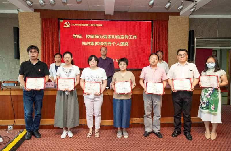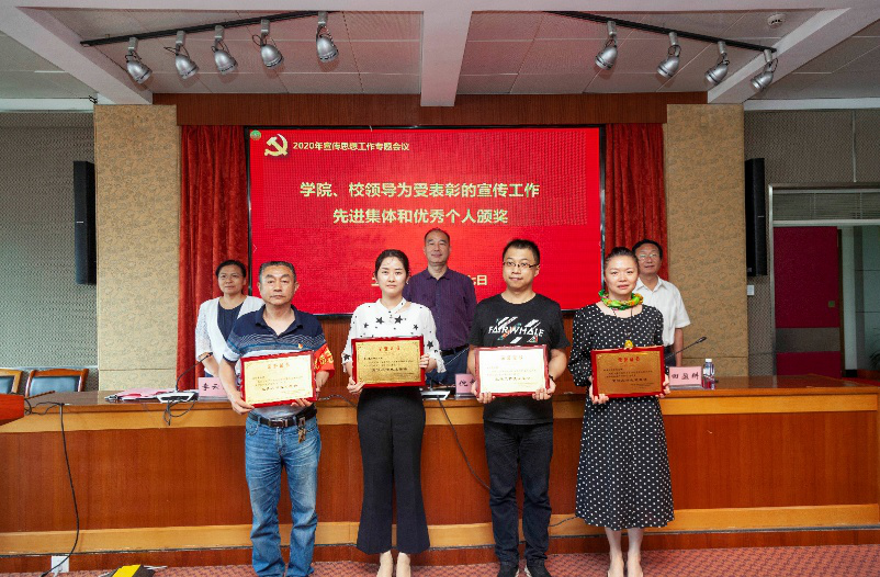 学院、校领导为受表彰的宣传工作先进集体后勤党支部、基础教学部党支部、政工党支部、机电工程系党支部和八位宣传工作优秀个人颁奖。