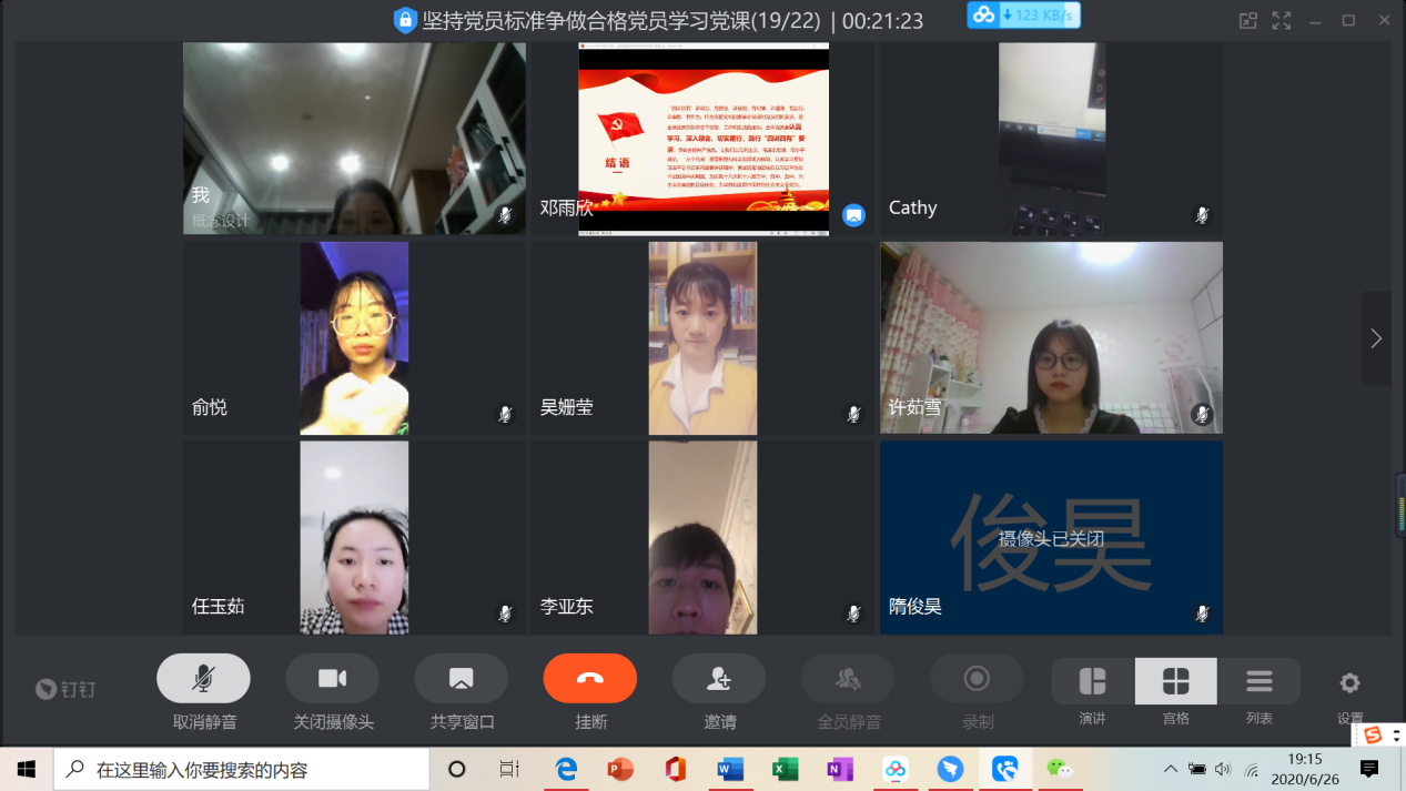 6月26日,艺术设计学院党委学生第一党支部和学生第二党支部通过腾讯网上会议开展了“深入学习‘四史’坚守初心使命”主题党日活动。支部书记朱瑞华主持活动,支部全体党员参加活动,入党申请人列席了活动。