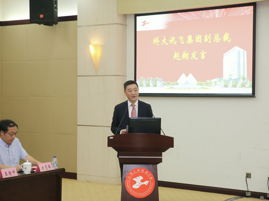 科大讯飞集团副总裁赵翔介绍了公司的发展理念及在人工智能领域的领先技术成果。他表示,公司历来重视与高校的合作,希望借助学院现有平台与专业设置,围绕人工智能产业发展主线,在学科专业群共建、学校信息化建设、科研项目合作与成果转化方面探索更大的合作空间。