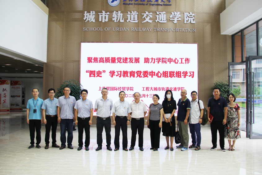 为更好贯彻落实上级党委关于“四史”学习教育相关要求,引导党员、干部把“四史”学习教育与学习习近平新时代中国特色社会主义思想紧密结合,把学习教育成果转化为攻坚克难、真抓实干、善作善成的实际行动。7月13日下午,城市轨道交通学院党委与上海对外经贸大学国际经贸学院党委在现代交通工程中心8A521开展“四史”联组学习,以“聚焦高质量党建发展,助力中心工作”为主题,进一步凝聚共识、汇聚力量、激发使命担当。上外贸国际经贸学院党委副书记、副院长金泉(主持工作),学院院长黄建忠,城市轨道交通学院党委书记柴晓冬,党委副书记、院长刘志钢,两个学院全体领导班子成员和教师党支部书记代表参加了本次学习会。学习会特别邀请了马克思主义学院副院长于凯教授作《学“四史”:守初心,担使命》专题报告。会议由城市轨道交通学院党委副书记盛知恒主持。