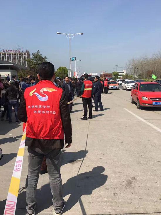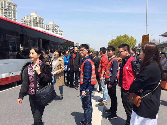 在现场,大学生志愿者们打起十二分精神:有的维持现场秩序,用扩音器提醒乘客注意安全,根据已制定的线路疏散,乘坐短驳巴士;有的手举“应急公交疏散点”指示牌,给乘客以提示,避免拥挤和混乱。