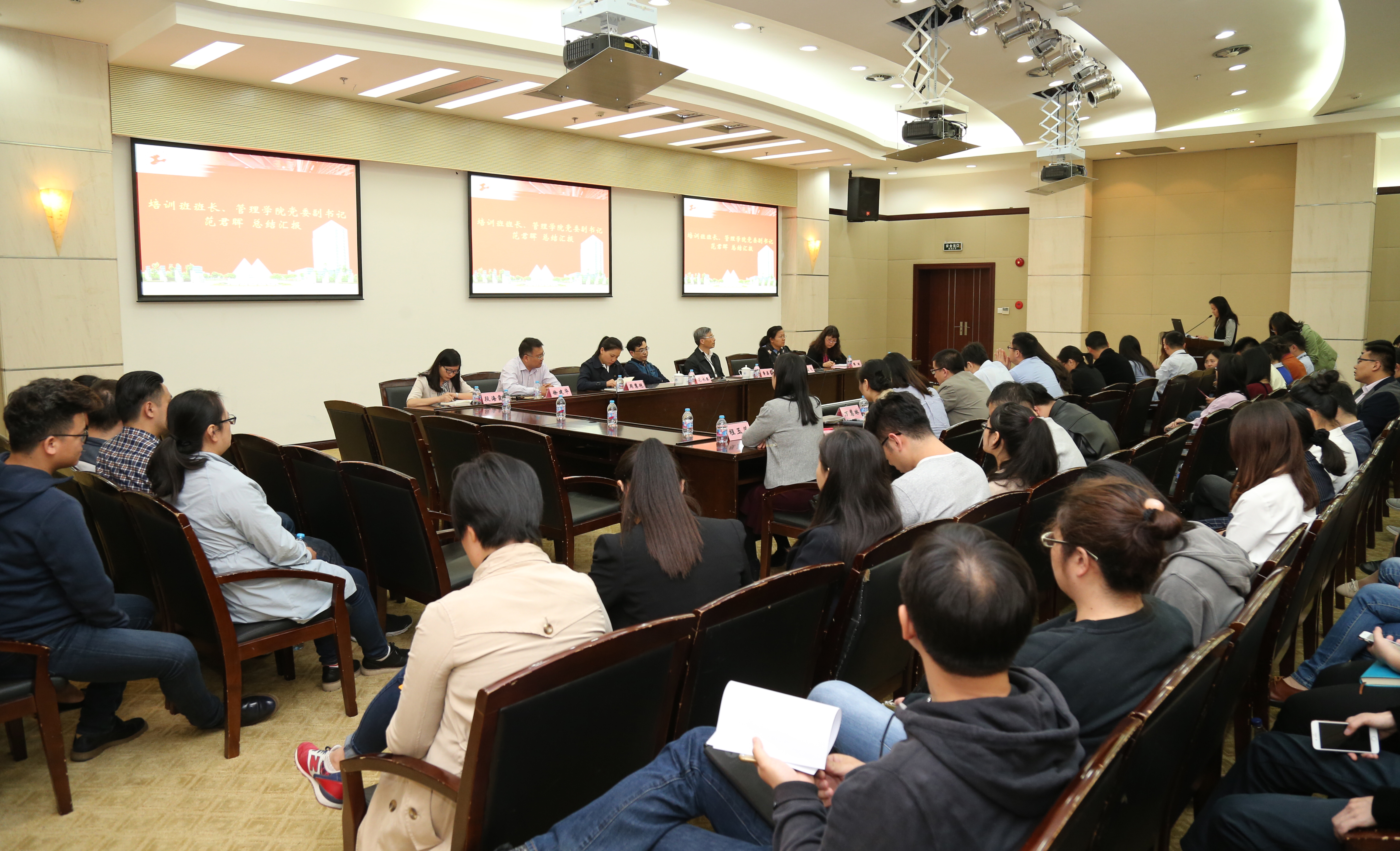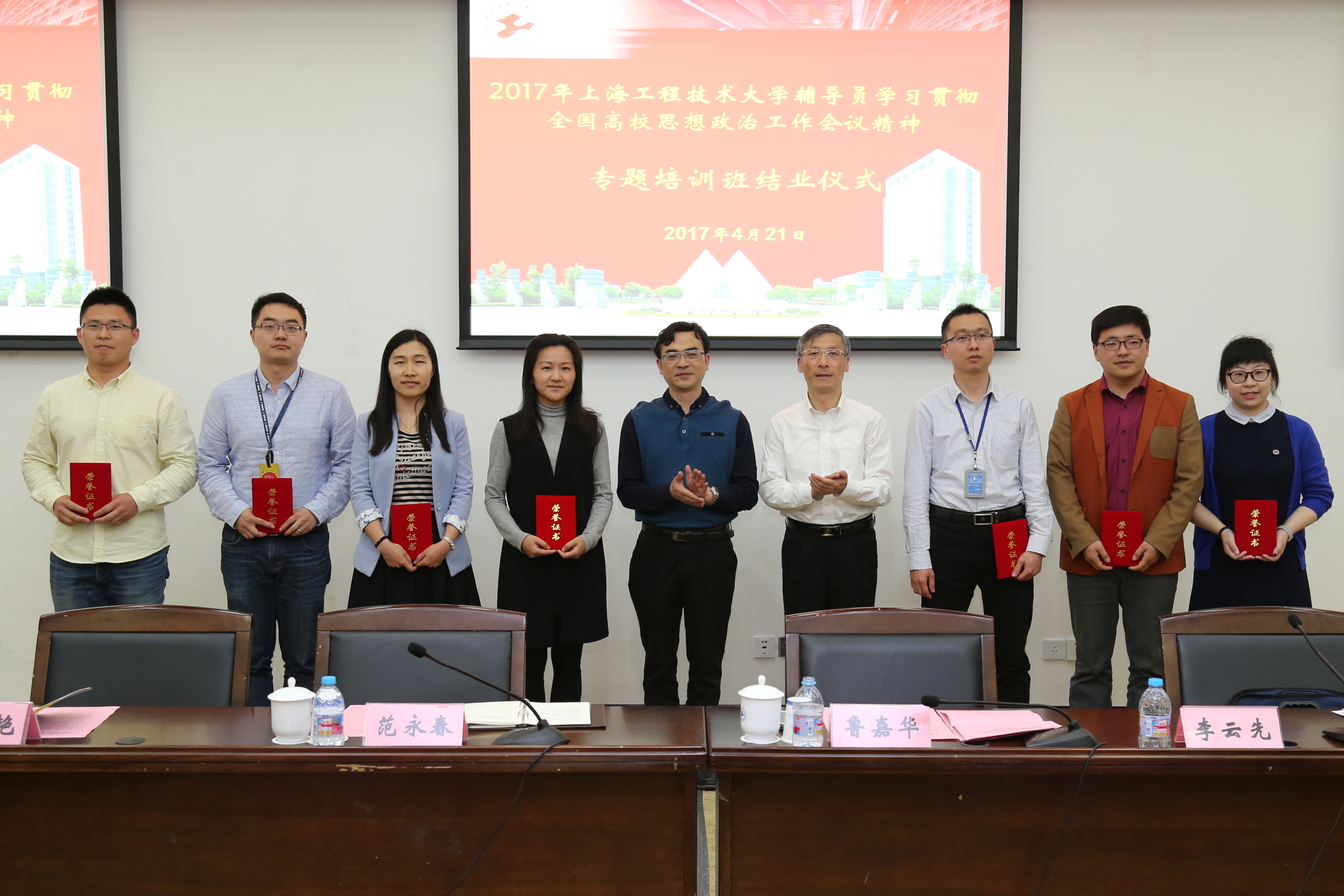 当天,学生工作部(处)、研工部举办的2017年上海工程技术大学辅导员学习贯彻全国高校思想政治工作会议精神专题培训在图文信息中心第三报告厅圆满落下帷幕。此次专题培训历时一个多月,学员包括各学院党委(党总支)副书记、全体专职辅导员、学生工作部(处)、研工部等相关人员共115名,共举办了以“全国高校思想政治工作会议精神解读”、“大学生心理突发事件的应急与处置”、“课程思政”、“网络思想政治教育”、“高校学生事务管理与思想政治教育”、“交通中国”等为主题的六场高水平主题报告、一场素质拓展活动和二十余场主题沙龙,理论与实践相结合,内容丰富,形式多样。