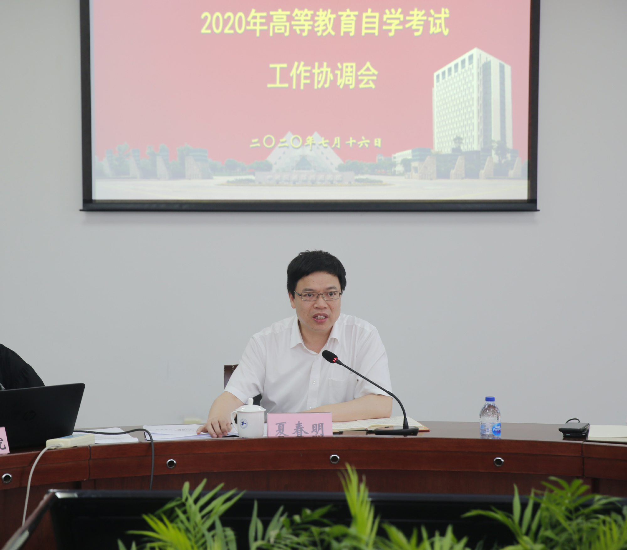 7月16日下午,我校在行政楼306会议室召开2020年高等教育自学考试工作协调会,会议由夏春明副校长主持,党委办公室、校长办公室、教务处、研究生处、资产与实验室管理处、保卫处、信息化办公室、后勤实业发展中心等相关部门(直属单位)及继续教育学院负责人参加了此次会议。