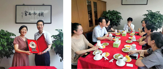 7月30日下午,纺织服装学院党委书记朱君璇,党委副书记谢志霞,学生工作办公室主任沈智莉,以及2名学生一行五人前往我校新村路校区,走访纺织服装学院优秀校友施介林。