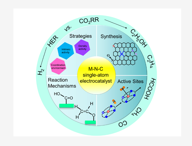 电催化二氧化碳还原反应(CO2RR)可在温和环境条件下,将重要温室气体之一的CO2直接转化为碳基化学品和高附加值燃料。然而CO2RR存在多个电子/质子耦合转移过程,产生多种中间体,机制复杂,所以在动力学上是缓慢的。因此,提高电催化CO2RR的性能需要高效的电催化剂。过渡金属氮碳(M-N-Cs)材料得益于独特的网络结构被认为是很有前途的贵金属催化剂候选材料,在电催化二氧化碳还原方面受到了广泛关注。2019级硕士研究生黄丽萍(第一作者)综述了金属氮碳(M-N-Cs)作为一种高活性和稳定的CO2RR电催化剂的最新研究成果。创新性的从实验和理论研究角度出发,对活性催化位点的作用和反应机理进行了探讨,并对CO2RR电催化剂的设计进行了总结,指出了未来可能新的研究方向。相关工作以“Metal-Nitrogen-Doped Carbon Single-Atom Electrocatalysts for CO2 Electroreduction”为题在工程技术和复合材料领域著名期刊《Composites Part B: Engineering》上(系中科院SCI分区工程技术大类一区Top期刊,IF=