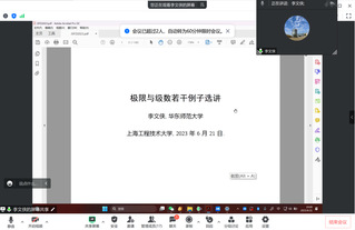 讲座题目极限与级数若干例子选讲主办单位数理与统计学院协办单位应用数学系讲座时间6月21日19:00-20:00主讲人李文侠教授讲座地点腾讯会议:177-569-024主讲人简介李文侠,华东师范大学数学系教授,博士生导师。1993年6月在武汉大学数学系获理学博士学位; 1995年7月至1996年7月在美国加洲大学Berkeley 分校数学系和Georgia理工大学数学学院进行学术访问,并于1998年10月至1999年10月在荷兰Delft理工大学概率统计优化系做博士后,之后多次赴境外进行学术交流或做合作研究。七次主持国家自然科学基金项目的研究,一次主持国家教育部基金项目,一次主持上海市教育委员会创新项目,参加了上海市科委的重大项目的研究,多次参加他人国家自然科学基金项目的研究,在国内外重要学术期刊发表学术论文九十余篇,作为参加者于2003年获国家教育部自然科学奖一等奖,于2006年获上海市自然科学二等奖。讲座内容简介1、利用定积分的定义计算极限;2、压缩映射原理;3、基于积分性质与计算方法。