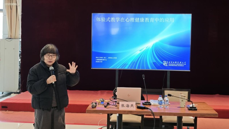 为持续赋能我校心理健康教育课程建设,提升育人实效,2025年11月19日,上海工程技术大学主办的2025年心理健康教学质量提升系列培训第4场在行政楼19楼顺利举行。本次培训特邀张海燕教授作题为《体验式教学在心理健康教育中的应用》的专题讲座。培训由心理健康教育中心薛玲老师主持,全体辅导员参加。张海燕教授从当前高校心理健康课程的现实挑战出发,指出在学时有限、学生注意力易分散的背景下,创新教学方法、提升课堂吸引力与实效性至关重要。她强调,体验式教学通过精心设计的课堂活动,将心理学知识转化为学生可感知、可参与、可内化的成长经验,是实现课程目标的有效路径。讲座中,张教授结合其丰富的教学实践与教材编写经验,系统阐述了体验式教学的理念与操作方法。她通过“压力管理”主题下的“雨中人绘画”、“角色姿态模拟”,以及“自我探索”模块中的“内观日记”、“鱼骨图人生回顾”等生动案例,现场演示了如何将抽象理论融入互动体验,引导学生在参与中觉察自我、学习应对策略、建构生命意义。张教授特别指出,成功的体验式教学绝非“为活动而活动”,必须与教学目标紧密衔接,注重“活动-分享-凝练”的完整过程,并始终关注课堂伦理与心理安