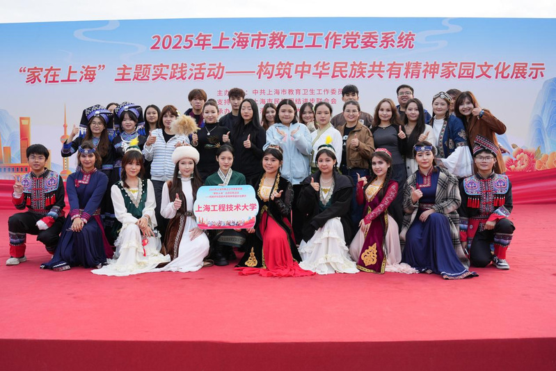 为深入学习贯彻党的二十届四中全会精神,全面落实习近平总书记关于铸牢中华民族共同体意识、做好新时代党的统一战线工作的重要指示精神,11月5日,由上海市教卫工作党委主办,上海市民族团结进步联合会支持,上海第二工业大学承办的2025年上海市教卫工作党委系统“家在上海”主题实践活动——构筑中华民族共有精神家园文化展示在上海第二工业大学举行。包括我校在内的40所高校的千余名各民族师生齐聚一堂,共同参与此次文化盛会。出席开幕式的有市教委、市民宗局等部门领导,各参展高校统战干部,以及各民族师生代表。我校党委统战部联合管理学院近32名师生参与活动。我校管理学院民族生的马头琴和民族舞蹈串烧《弦舞和鸣·草原情》生动表现了中华文化的独特魅力与多彩风貌,赢得了现场阵阵热烈掌声。“竹竿舞”社团学生带领观众随着节奏互动跳跃,在轻松欢快的氛围中传递民族体育文化的活力,展现我校学子自信向上的青春风貌。本次活动是上海市教卫工作党委系统民族团结进步教育的重要实践内容,也为我校学生提供了展示才华、交流互鉴的广阔平台。我校将继续把铸牢中华民族共同体意识贯彻落实于立德树人的全过程,在“三旋翼”育人理念引领下,不断提升人才培养质